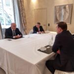 На средбата во насока на продолжување на политичкиот дијалог воспоставен меѓу двете Влади присуствуваат и заменик-претседателот на Владата за европски прашања, Бојан Маричиќ и министерот за надворешни работи, Бујар Османи.