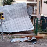 Силниот ветер откорна покрив од станбена зграда на улица „Мирче Ацев“ чии делови оштетиле повеќе куќи и автомобили во соседството.