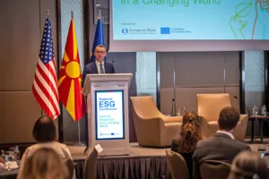 Под мотото „Градење отпорност во свет што се менува“, денеска во Скопје се одржа регионалната ESG конференција посветена на стандардите за животна средина, општествени прашања и корпоративно управување (ESG), организирана од Американските стопански комори (АмЧам) од Северна Македонија и Србија, во соработка со АмЧам Албанија и Косово, а со поддршка од Европската банка за обнова и развој (ЕБОР) и кофинансирање од Европската унија.