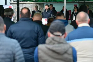 „На 19 октомври сите заедно да излеземе и да гласаме за број 5 – за нашата иднина, за нашите деца, за Вевчани! За Стефан Радиноски за градоначалник и за советничката листа на СДСМ и Коалицијата. Заедно се бориме за нашиот дом – за Вевчани, за Македонија, за сите нас!“