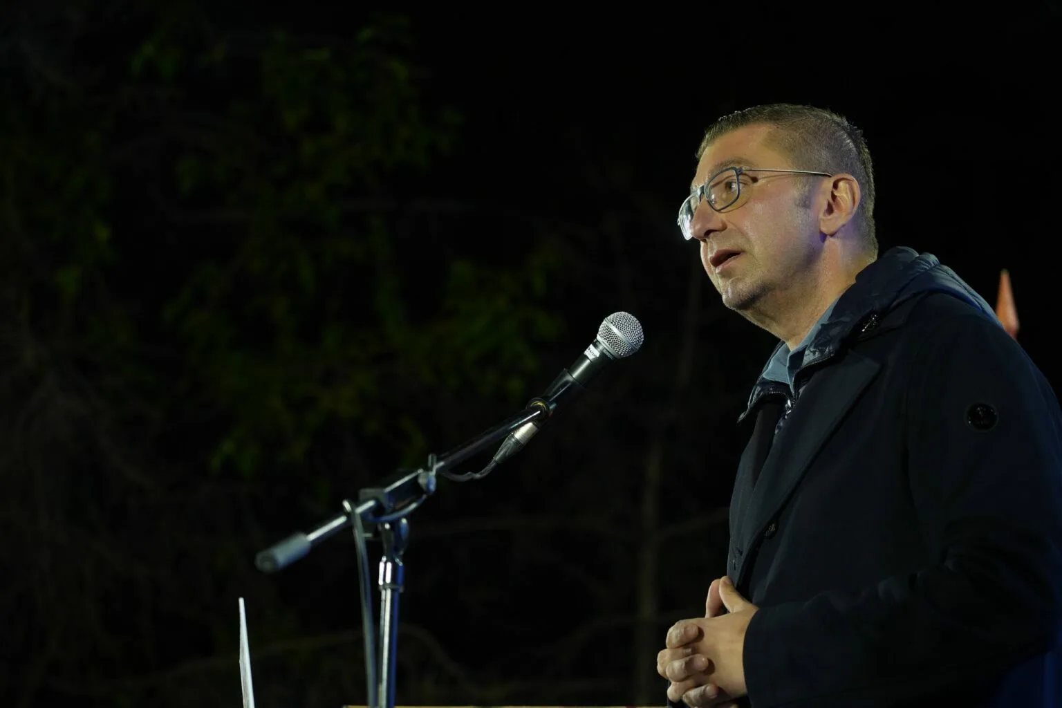 „Тука сме во Карпош, каде граѓаните се соочуваат со еден феномен на киднапирање на општината за лични интереси и криење зад функцијата зашто без функцијата тој човек е ништо. Но внимавајте има една замка голема која што се обидуваат да ја подготват, а пред неколку дена тајно во седиштето на СДСМ овој кандидатот и актуелен градоначалник во Карпош заедно со претседателот на СДСМ мислеле, премерувале како да обезбедат 2000 гласа за него од СДСМ да ја пуштат нивната кандидатка низ вода а тој да влезел во вториот круг. Но тука има непознати во оваа равенка. А јас знаете дека сум по равенките и математички прецизно ќе им порачам. Прв проблем, народот не е квантум на гласови, не е тоа вреќа, па ќе купите и ќе претурите, тоа се луѓе со судбини, со иднина, со предизвици, со животи. Тоа се семејства со мечти и амбиции, кои знаат, кои критично гледаат на работите, и оценуваат. Посебно затоа што анкетите се така јасни што дури и од Горни Милановац да донесете гласачи, каде еден познат македонски политичар имал кариера во минатото, повторно нема да им успее.“ истакна Мицкоски