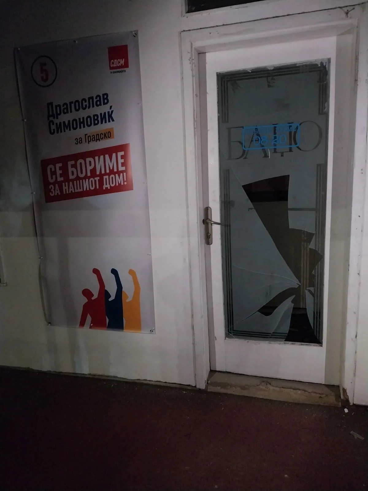 Синоќа се искршени стаклата на изборниот штаб на СДСМ во Градско. Овој насилнички и вандалски чин го покажува стравот на власта од изборен пораз во Градско.
