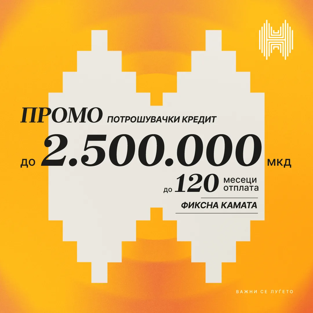 Халкбанк АД Скопје им овозможува на своите клиенти нова можност да ги реализираат своите желби и планови под поволни услови, преку промотивната понуда за Промо потрошувачки кредит, со фиксна каматна стапка за целиот период на отплата.