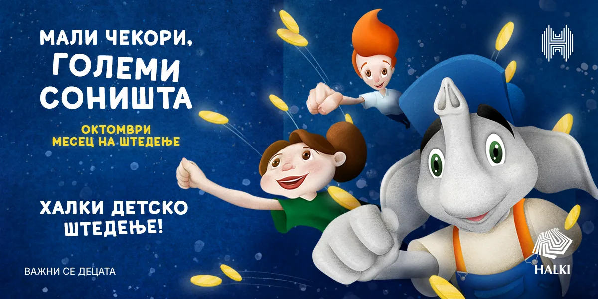 Во октомври, месецот на штедење, Халкбанк уште еднаш потсетува дека навиката за штедење не се учи само преку бројки, туку и преку љубов, грижа и трпение. Со детското штедење Халки, банката повеќе од една деценија ги учи најмладите дека секој мал чекор денес може да донесе голема промена утре. Со слоганот „Мали чекори – големи соништа“, Халки праќа порака дека вистинската вредност не е во тоа колку имаме, туку како се грижиме за она што го имаме. Секоја уплата во детското штедење е повеќе од бројка – тоа е порака на љубов, посветеност и сигурност кон иднината на детето.