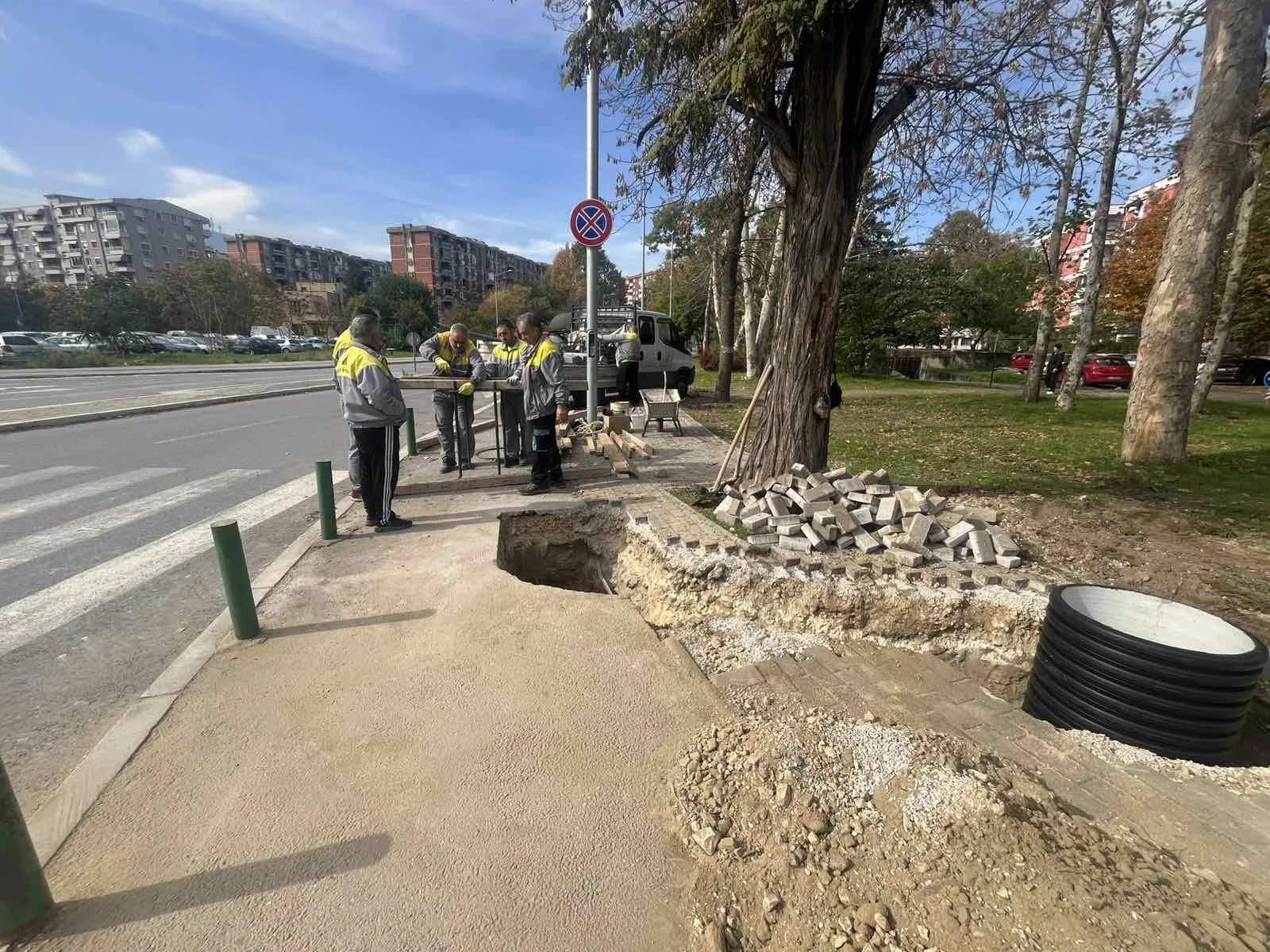 Се вршат подготовки за бетонирање на темелите, на кои ќе бидат поставени семафорските портални столбови и спроведена семафорската инсталација.