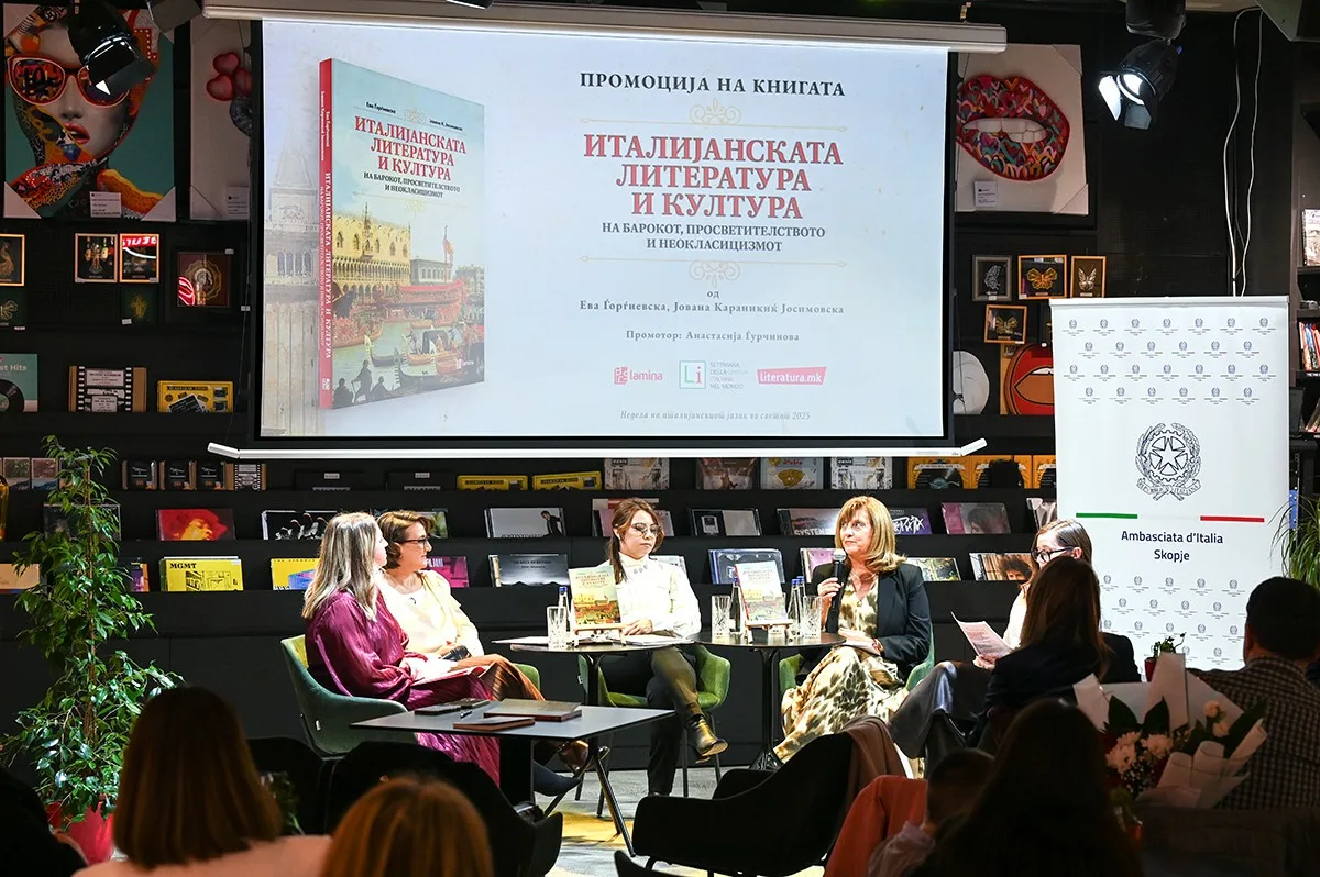 Поттикнати од потребата да се збогати наставата по италијанска книжевност со дело што на едно место ќе ги обедини најзначајните италијански автори и изданија од 17 до почетокот на 19 век, професорките од Филолошкиот факултет при Универзитетот „Гоце Делчев“ – Штип, проф. д-р Ева Ѓорѓиевска и проф. д-р Јована Караникиќ-Јосимовска, го создадоа делото „Италијанската литература и култура на барокот, просветителството и неокласицизмот“. Книгата, во издание на „Арс Ламина“, беше промовирана вчеравечер (29 октомври) во книжарницата „Литература.мк“ во „Дајмонд мол“.