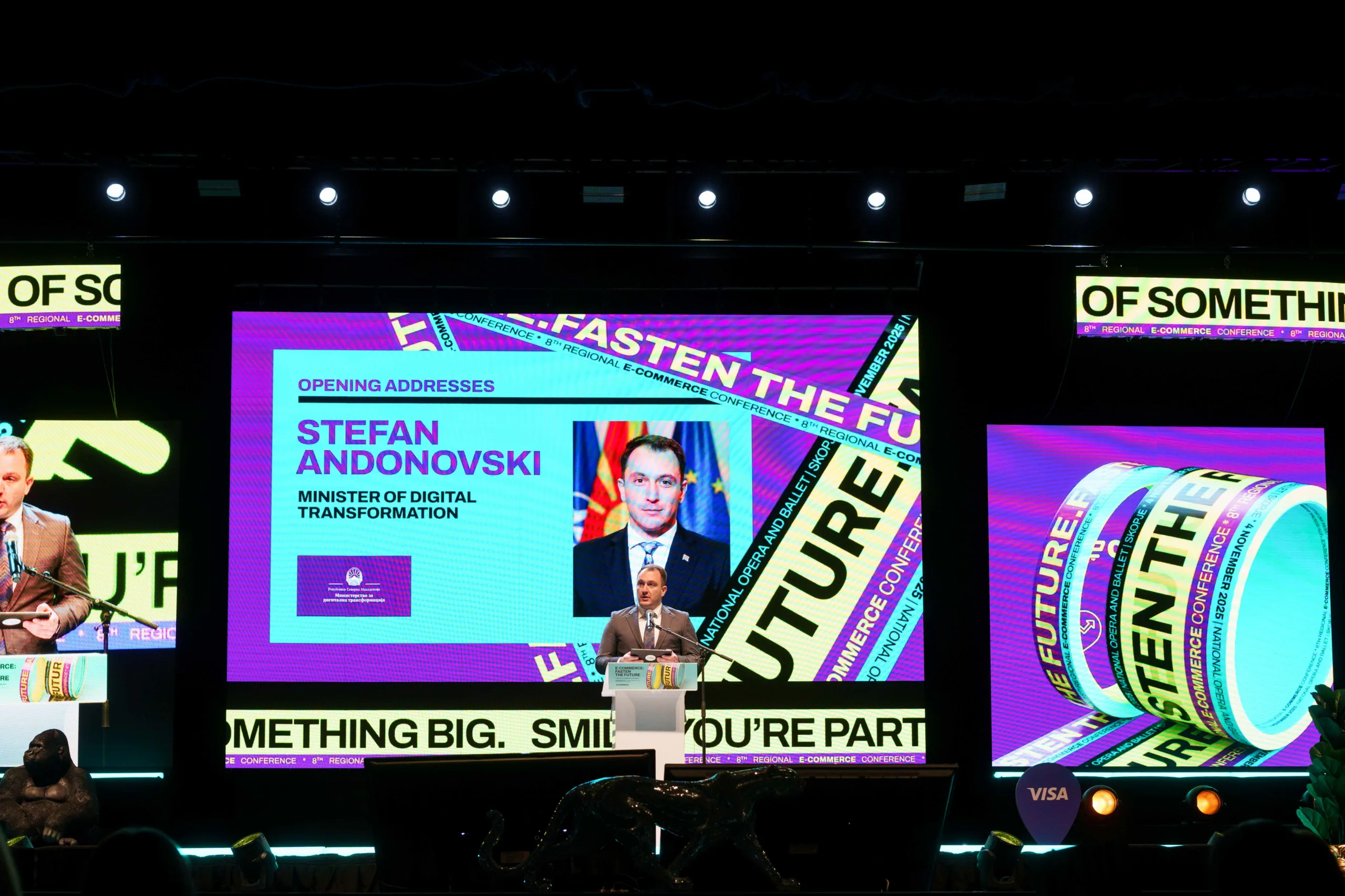 Министерот за дигитална трансформација, Стефан Андоновски, на отворањето на 8-та Регионална Е-комерц конференција во Скопје, истакна дека е-трговијата веќе не е алтернативен, туку доминантен економски модел, кој бара силна поддршка од државата преку модерни дигитални платформи, регулаторна предвидливост и иновации ориентирани кон пазарот.