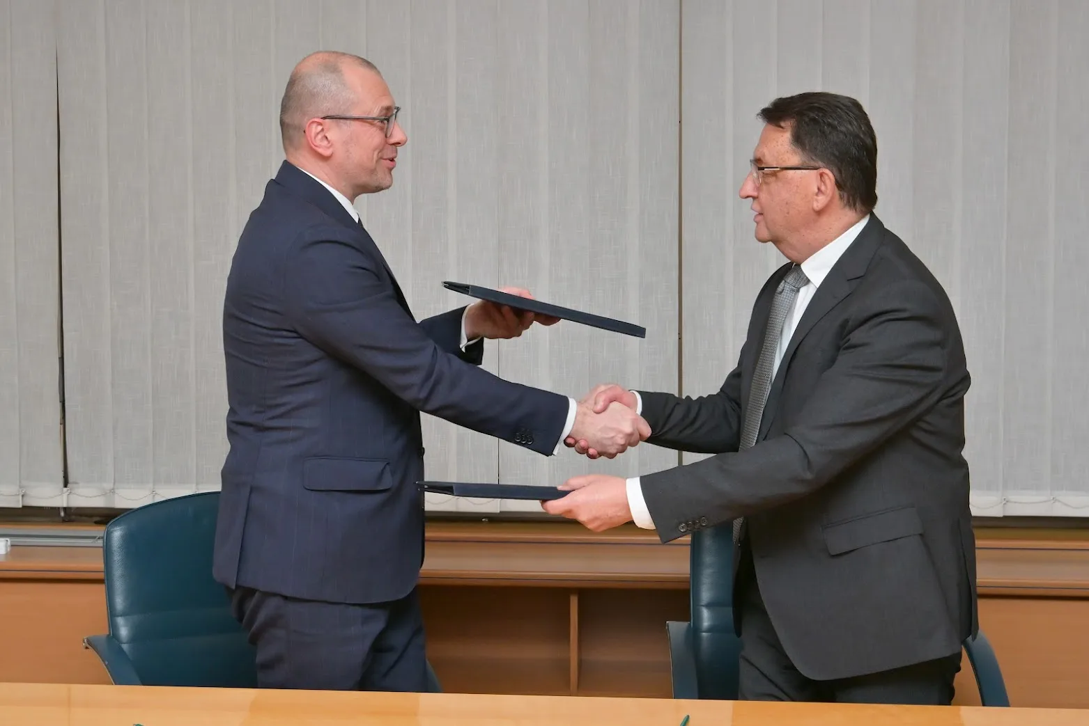 Гувернерот на Народната банка, д-р Трајко Славески, од една страна и претседателот на Управниот одбор на НЛБ д.д. Љубљана, Блаж Бродњак и членот на Управниот одбор на НЛБ д.д. Љубљана, Антонио Аргир, од друга, потпишаа договор за меѓусебна соработка којшто ѝ овозможува на Народната банка да започне со плаќања преку СЕПА.