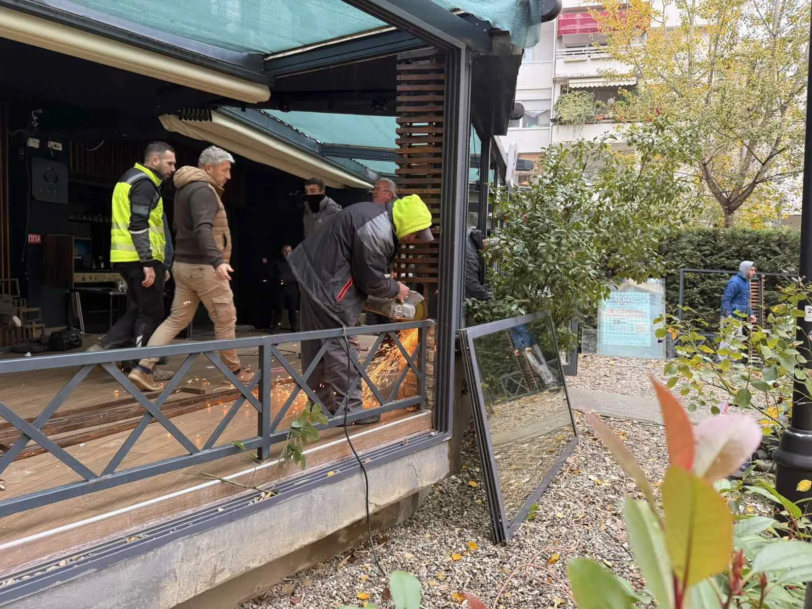 Конструкцијата, со димензии 15 x 5,7 метри, беше изградена без одобрение за градење и го узурпираше заедничкиот простор предвиден за граѓаните.