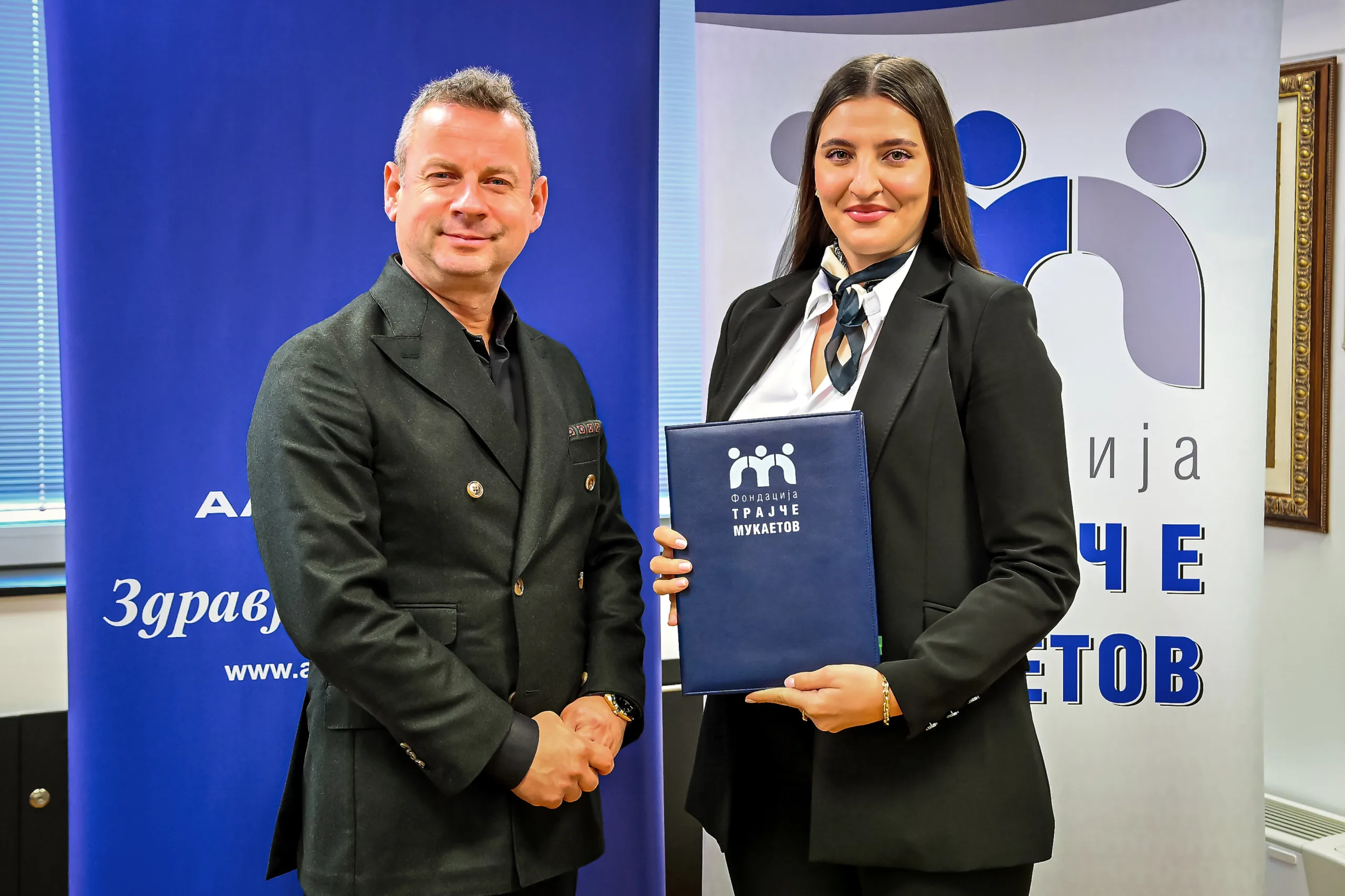 „Во време кога вештачката интелигенција станува неизбежен дел од секојдневието, важноста на човечкиот фактор, а особено на квалитетното образование, станува пресудна. Затоа, образованието не смее да се сведе само на стекнување технички вештини, туку треба да мотивира, да поттикнува критичко размислување, креативност и способност за решавање комплексни проблеми. Во вакви специфични времиња исполнети со огромни предизвици, особено за младите, вистинска чест е да се биде дел од континуирана позитивна приказна на едукација, научна посветеност и врвни резултати во сферата на здравството и фармацијата. Благодарение на високата селективност при ангажирањето стручен кадар и на континуираните вложувања во развој и едукација, денес ’Алкалоид’ конкурентно и достоинствено се носи на глобалниот фармацевтски пазар“, изјави г. Живко Мукаетов, Претседател на Фондацијата „Трајче Мукаетов“ и Генерален директор на компанијата „Алкалоид“ АД Скопје.