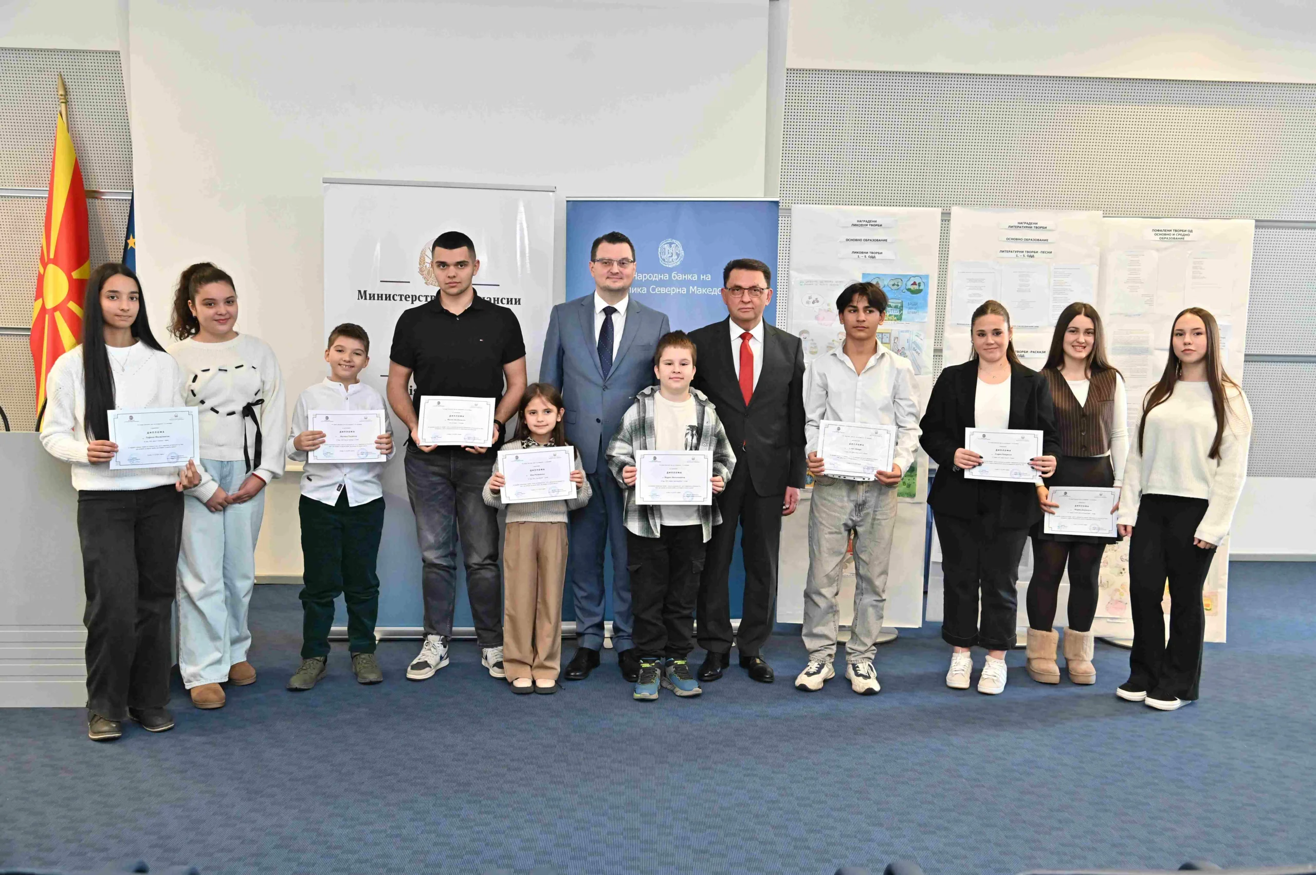 Народната банка и Министерството за финансии им упатуваат благодарност на сите ученици кои учествуваа на Конкурсот, на менторите за нивната поддршка и на родителите за значајната улога во образовниот процес.