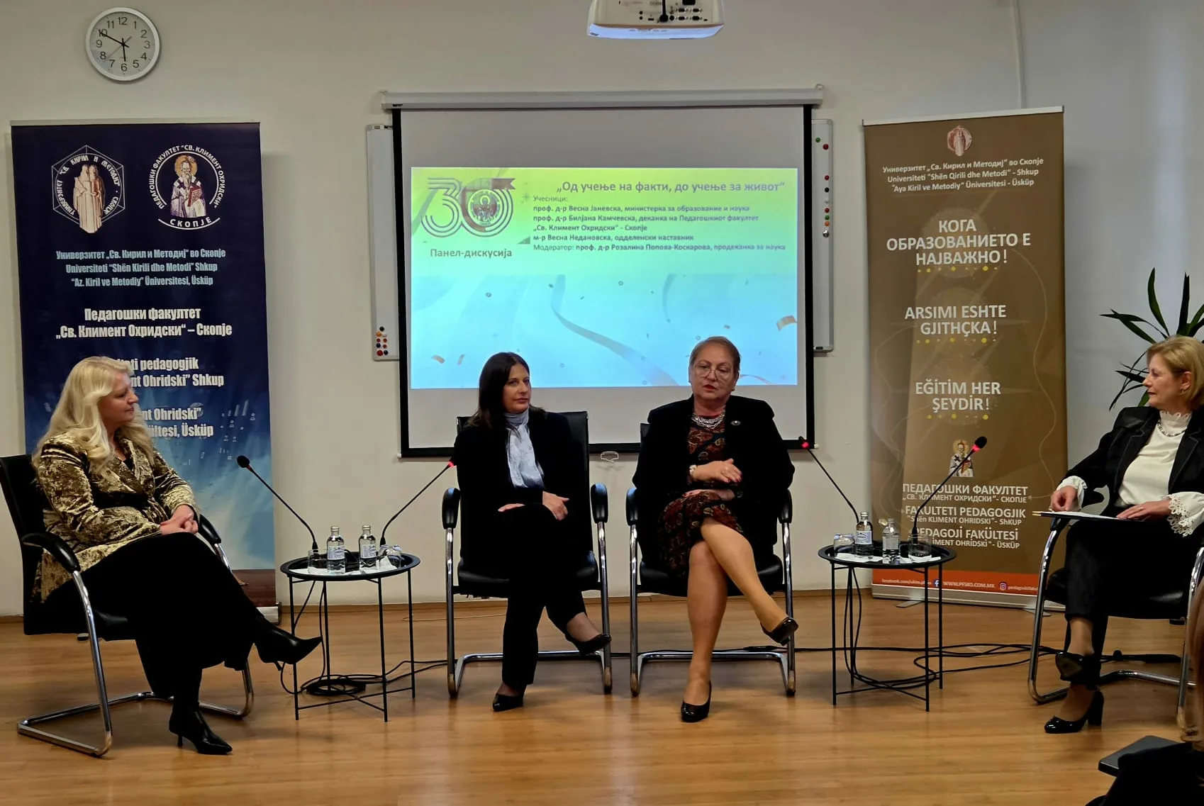 На панел дискусијата организирана по повод јубилејот, министерката Јаневска рече дека нашето образование во целина има простор за подобрување, и за таа цел во тек се реформи кои опфаќаат и промена на наставните програми и обуки за наставниците.