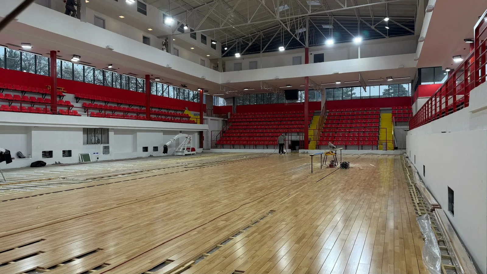 Трибините се целосно завршени, а во тек е поставување на заштитни огради согласно противпожарните стандарди. Амбиентот во салата е во боите на КК „Работнички“, со црвени столчиња и бело-црвени ѕидови.