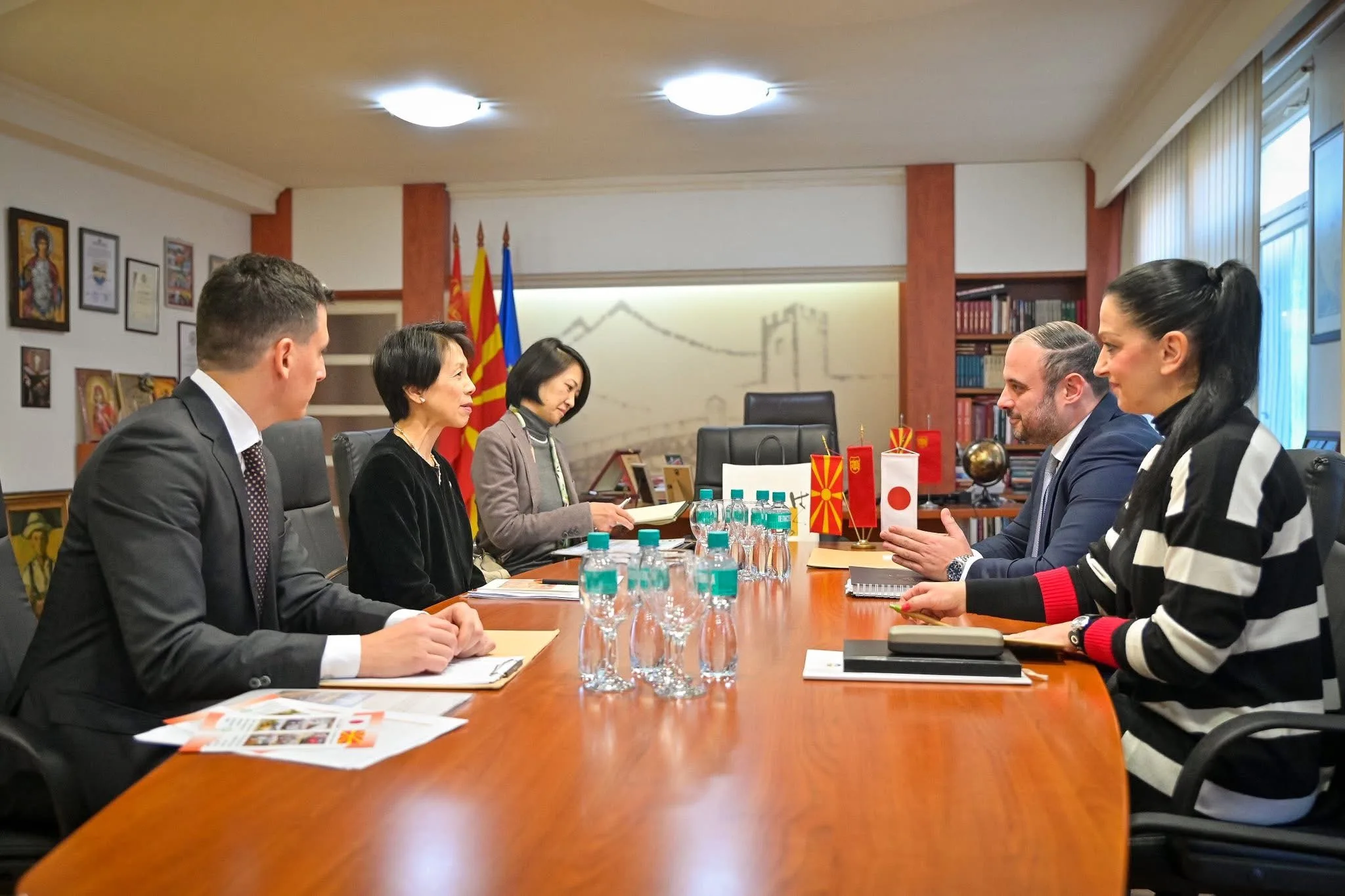 Градоначалникот на Град Скопје, Орце Ѓорѓиевски, денес оствари протоколарна и исклучително пријатна средба со делегација од Амбасадата на Јапонија, предводена од амбасадорката Н.Е. Сецуко Кавахара. На состанокот присуствуваа и заменик-амбасадорката Шимасаки Терујо, како и советникот во амбасадата, Ариан Шумковски. Средбата беше посветена на претставување на стратешката визија за развој на Скопје, можностите за продлабочување на соработката и зајакнување на пријателските односи помеѓу двете земји.