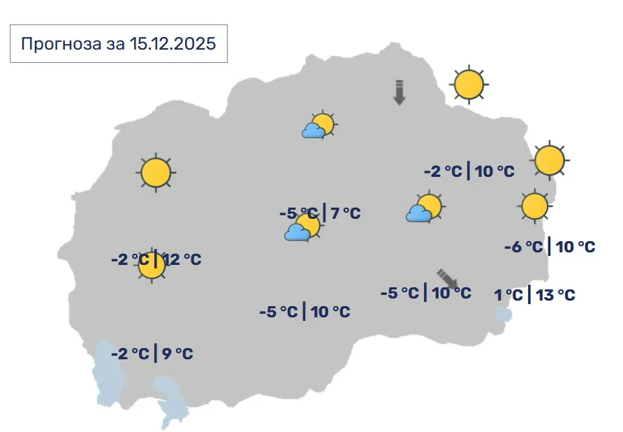 Во Скопје, претпладне во делови од котлината ќе има појава на магла. Во текот на денот времето ќе биде сончево и претежно тивко.