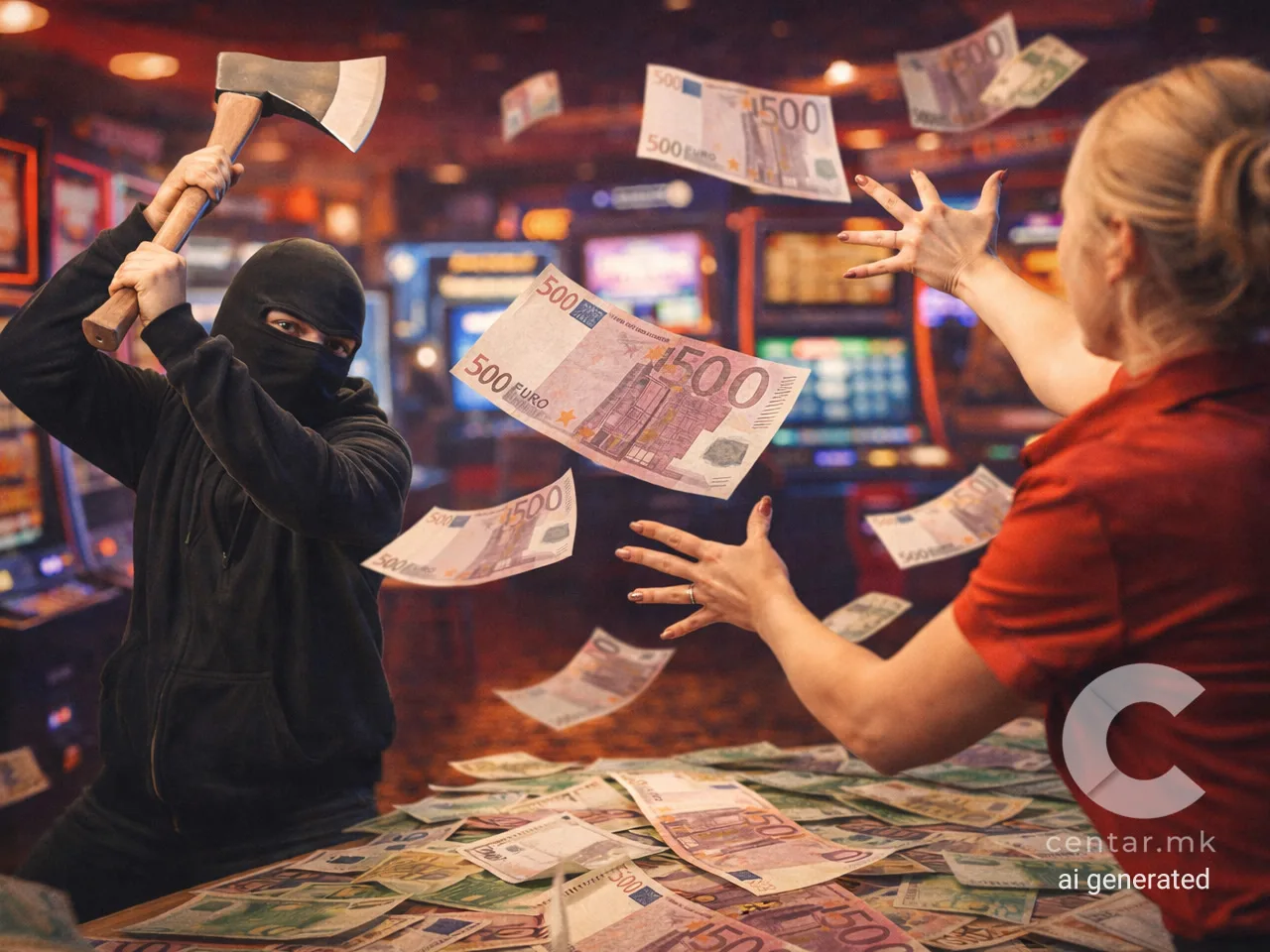 На 15.12.2025 во 19:40 часот полициски службеници од СВР Битола во казино на ул. „Филип Втори Македонски“ во Битола го лишија од слобода маж (53) од Битола, постапувајќи по добиена пријава околу 18:30 часот дека во казино лоцирано на ул.„Маршал Тито” во Битола, едно лице со закана со секира од вработената одзело околу 8600 денари, по што се дало во бегство.