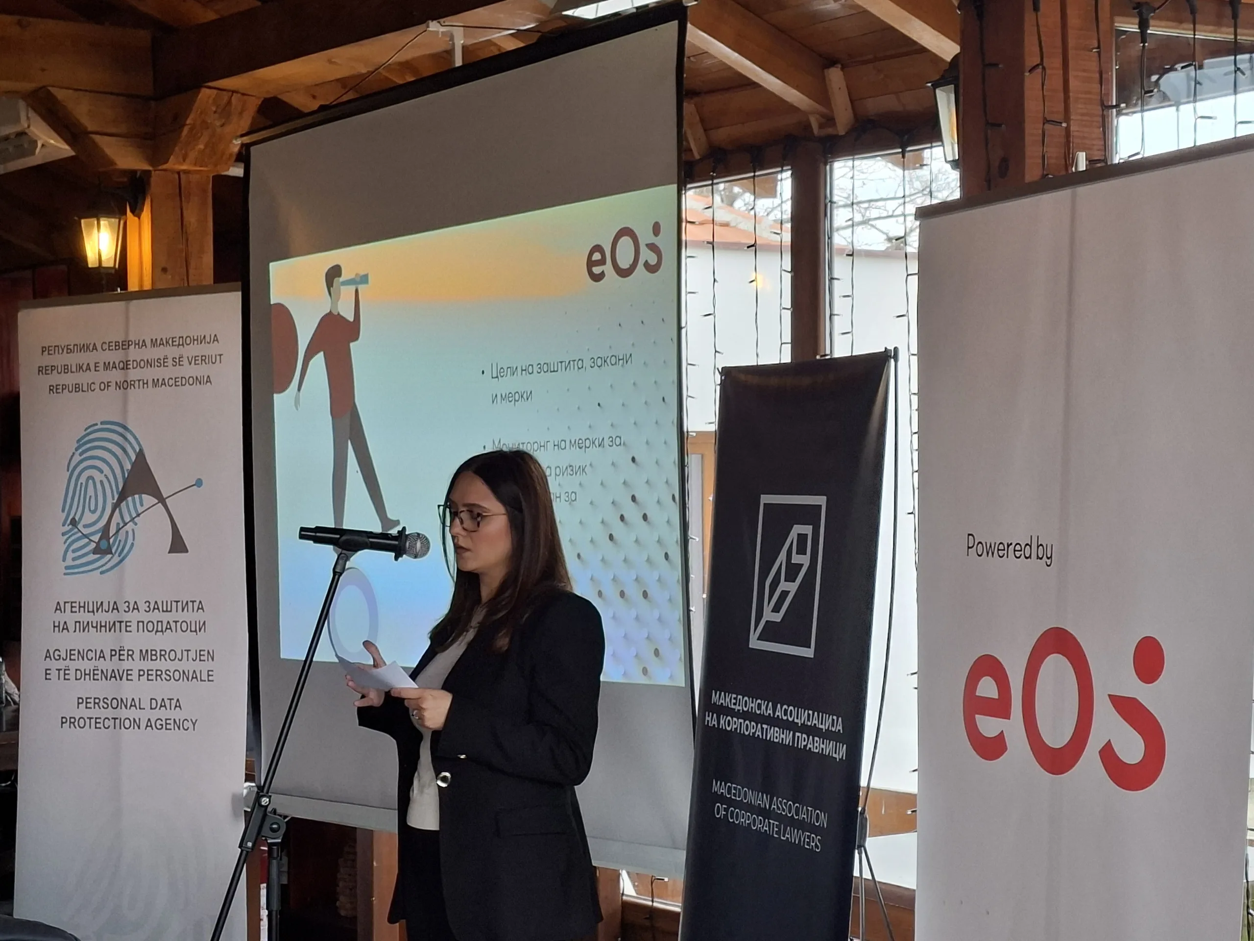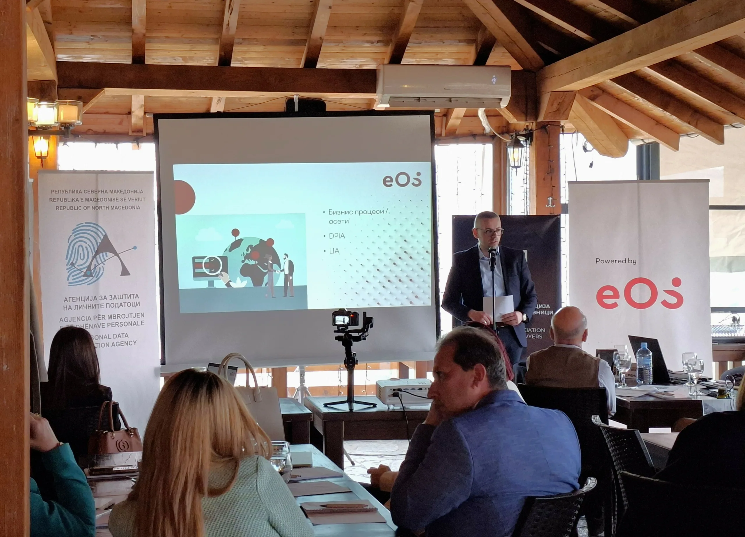 Презентацијата на Влатко Водасов, директор за правни работи и усогласеност, и на Маја Ѓоргиевска, офицер за усогласеност во ЕОС Матрих Македонија, понуди приказ како во реалниот сектор изгледаат позитивните искуства од примената на Правилникот за безбедност на обработката на личните податоци, претставувајќи конкретна студија на случај од реалниот сектор. Тие се осврнаа на процесот на трансформација „од регулаторно барање до интегриран систем за управување со приватност“, нагласувајќи дека ефективната заштита на личните податоци подразбира целосна интеграција на GDPR принципите и ISO 27701 стандардот во секојдневното работење.